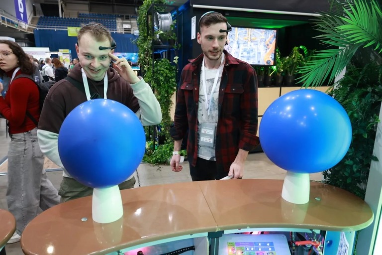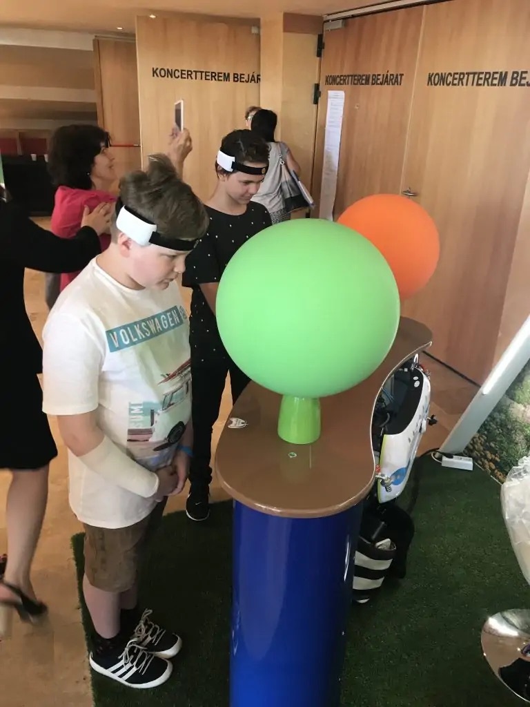 As soon as the headbands placed on our forehead detect these brainwaves, they send a signal, and compressed air begins to inflate the balloons. The speed of the airflow is influenced by the power of our thoughts. The winner is the one who inflates the balloon faster. The stronger our concentration, the more powerful the airflow.
