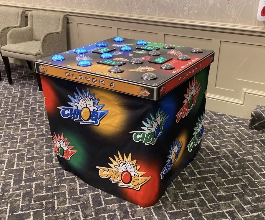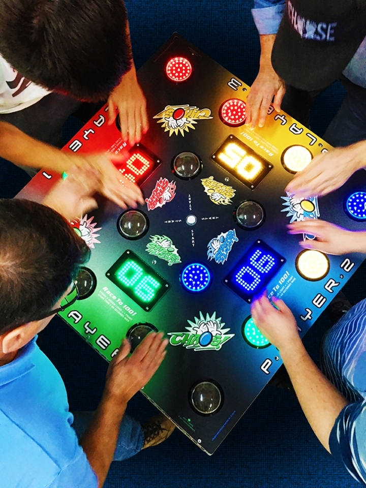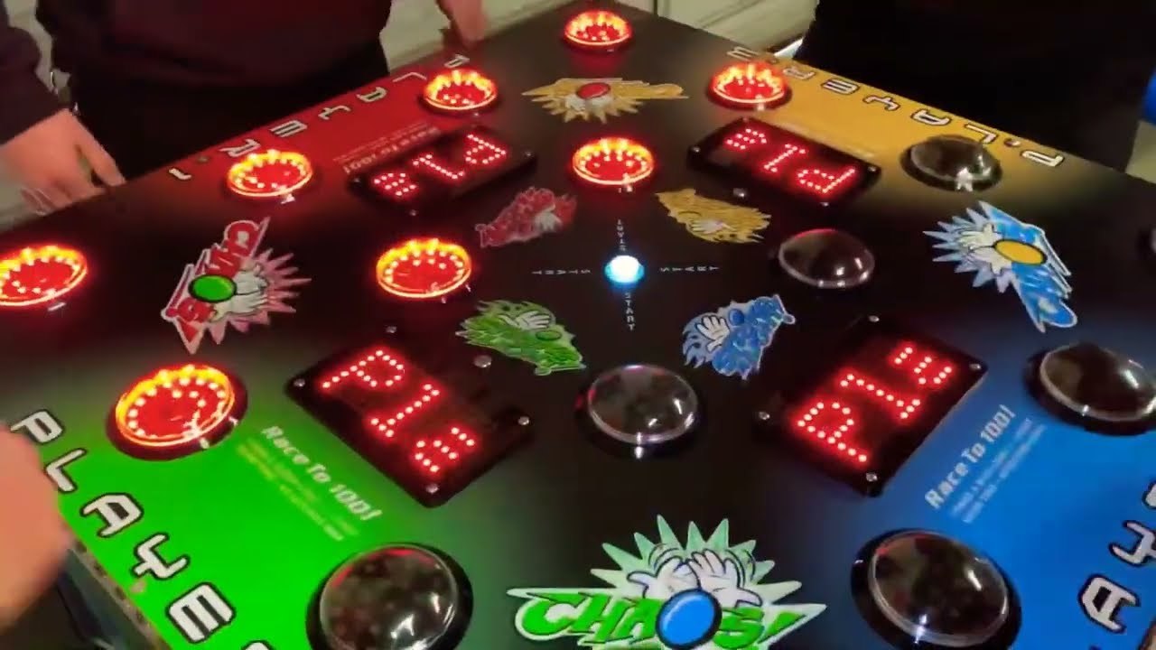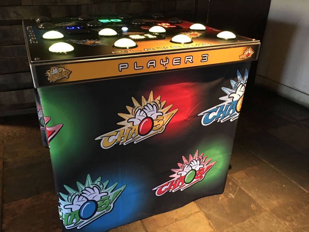 CHAOS is a fast-paced, high-intensity, four-player reaction game that can surpass the excitement of Strike a Light, as the flashing lights can change colors! The goal for players is to hit the buttons on the board that flash in their assigned color, creating a highly chaotic atmosphere.