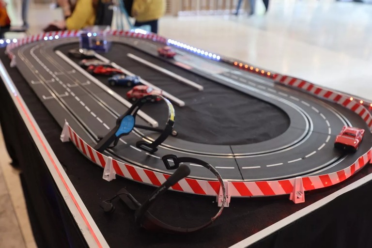 Both the cars and the track can be fully branded. You can also select different car models for the game upon prior arrangement. The fabric covering the lower part of the machine can be customized with your graphics within 4-5 days.