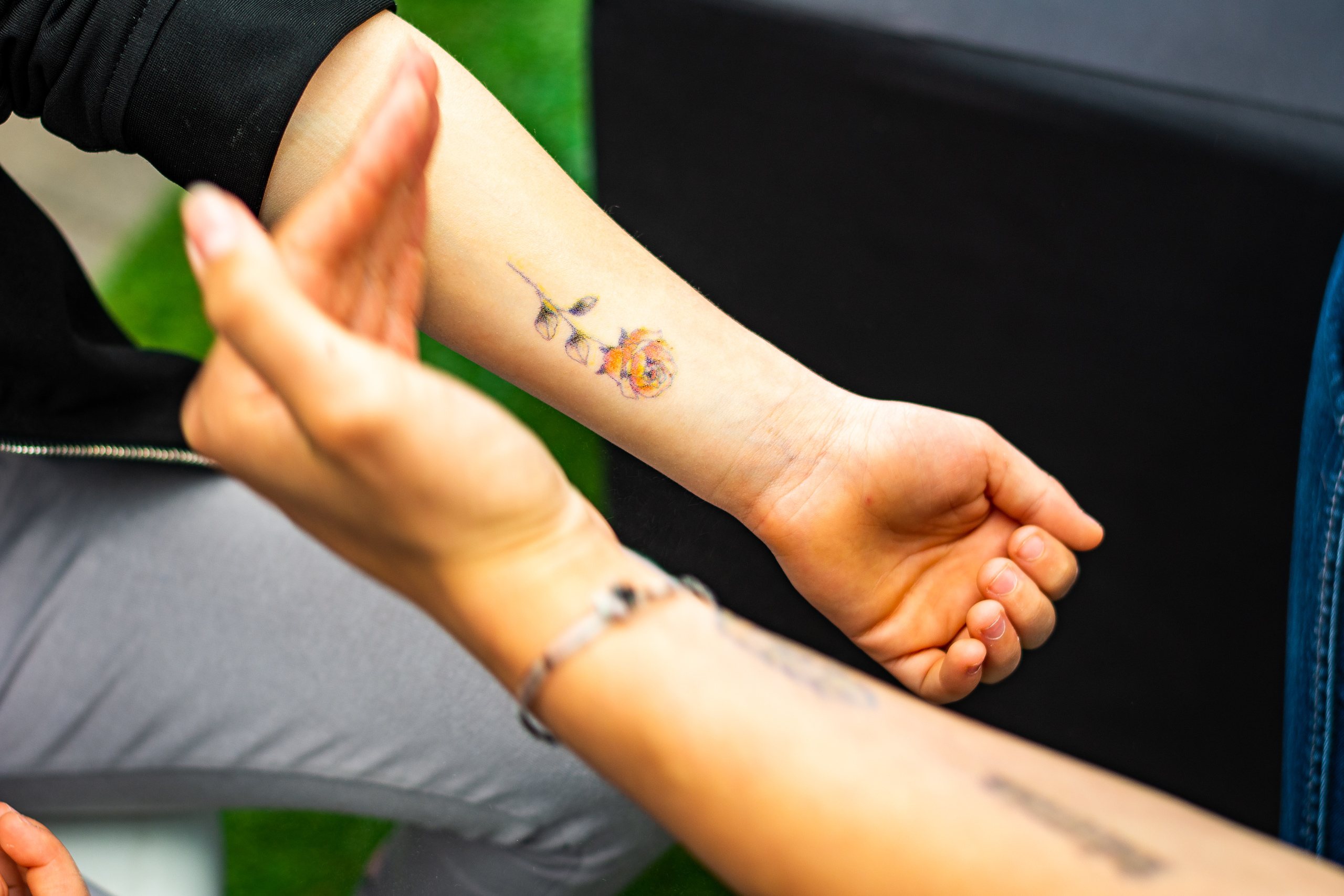It takes around 3 seconds to create your tattoo, but it can stay up to 1-3 days. You can't wash it off with just water, but you can with soap.