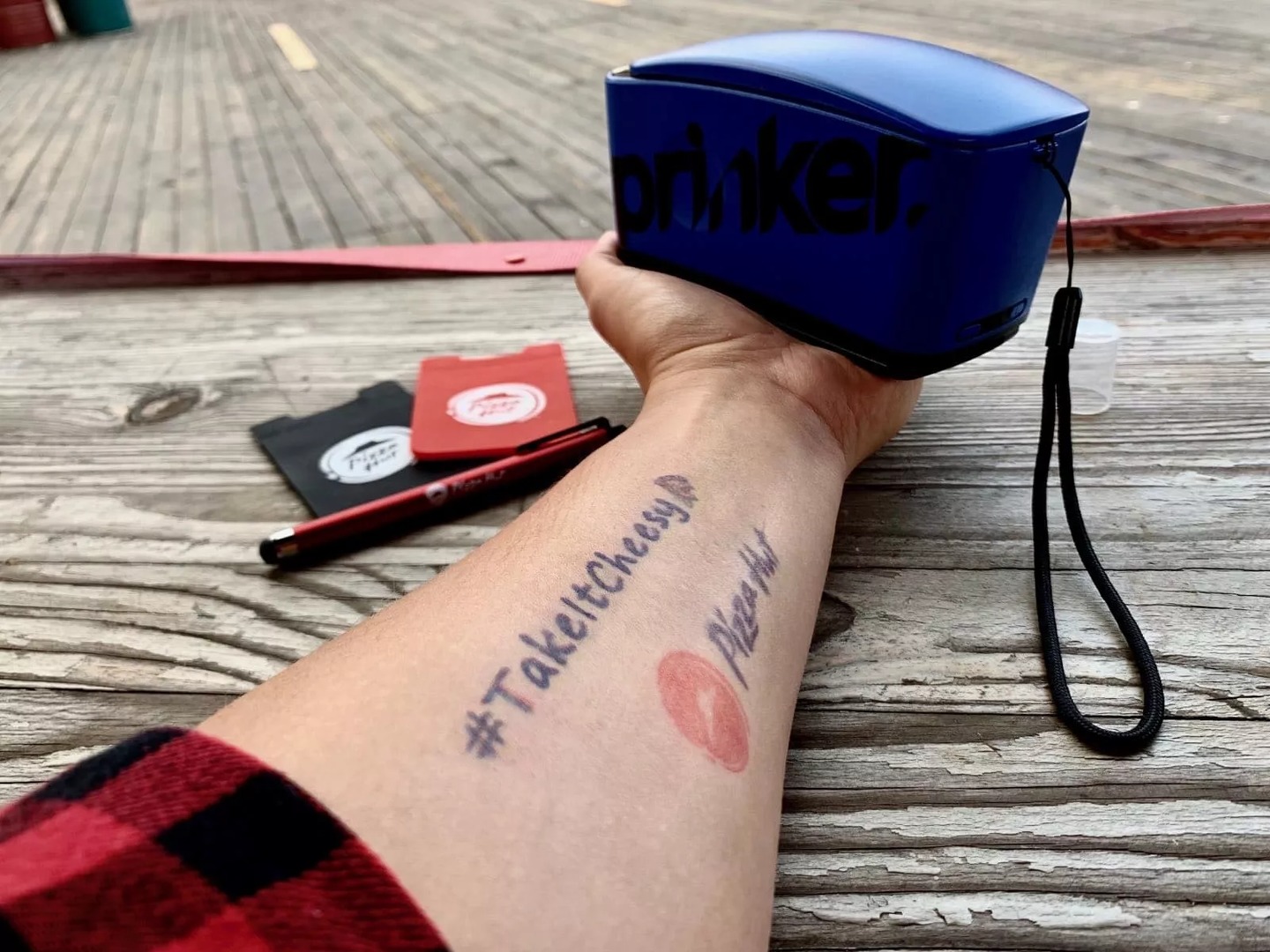 PRINKER can tattoo any messages, logos, or drawings on the guests.