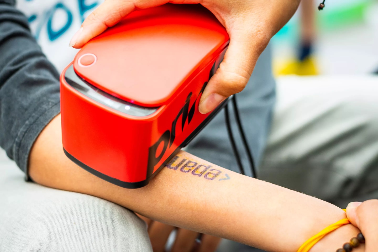 PRINKER instantly creates temporary tattoos from almost any logo, illustration, or message. The device is connected with a tablet, where you can easily select your desired graphics. Fast, safe, and supermodern!