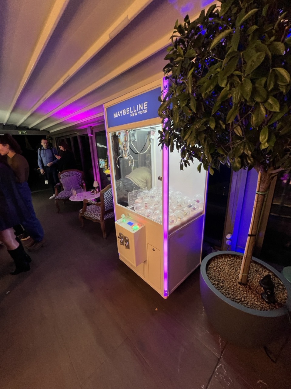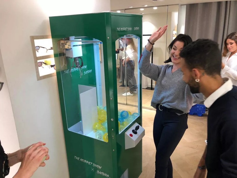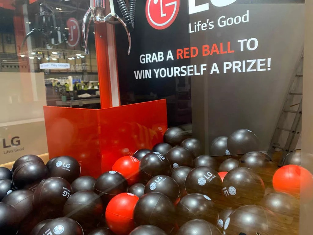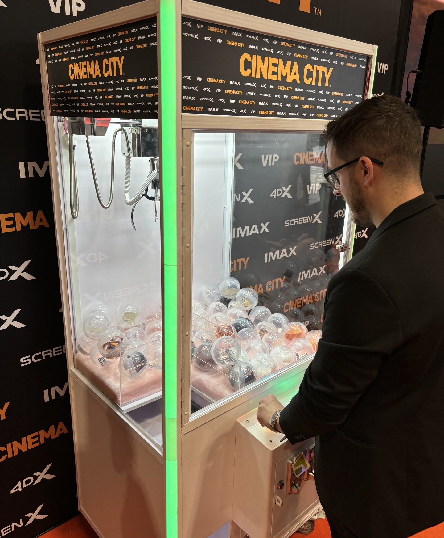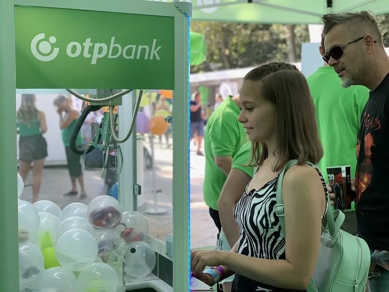A kimarkolt gömböt a nyílás fölé viszi a kar, ahol elengedi, így a vendég már ki is veheti az ajándékát.