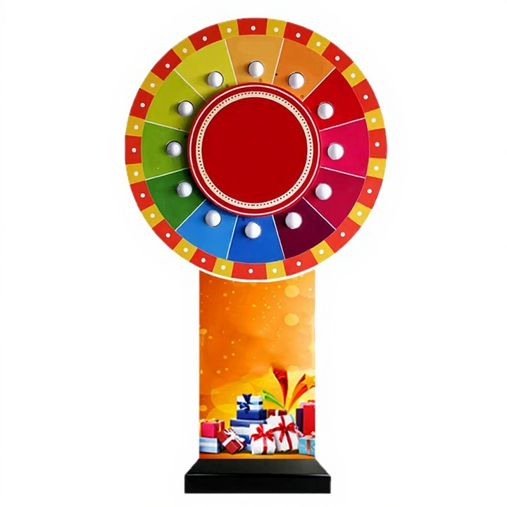 A Lucky Wheel teljes mértékben személyre szabható: megjeleníthető rajta a céges logó, egyedi színek, sőt a nyeremények formája és mérete is szabadon választható, így semmi sem állhat a kreativitás útjába.