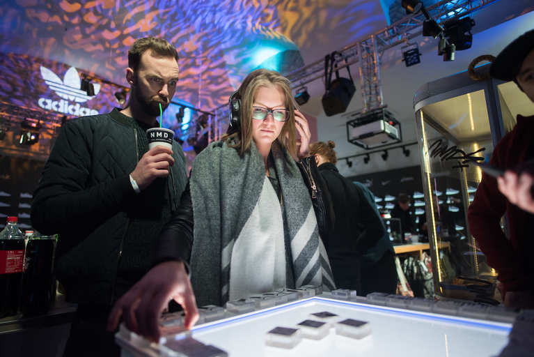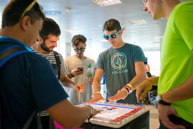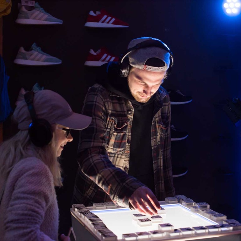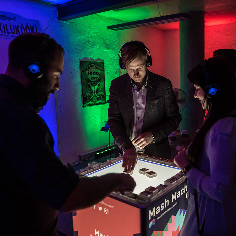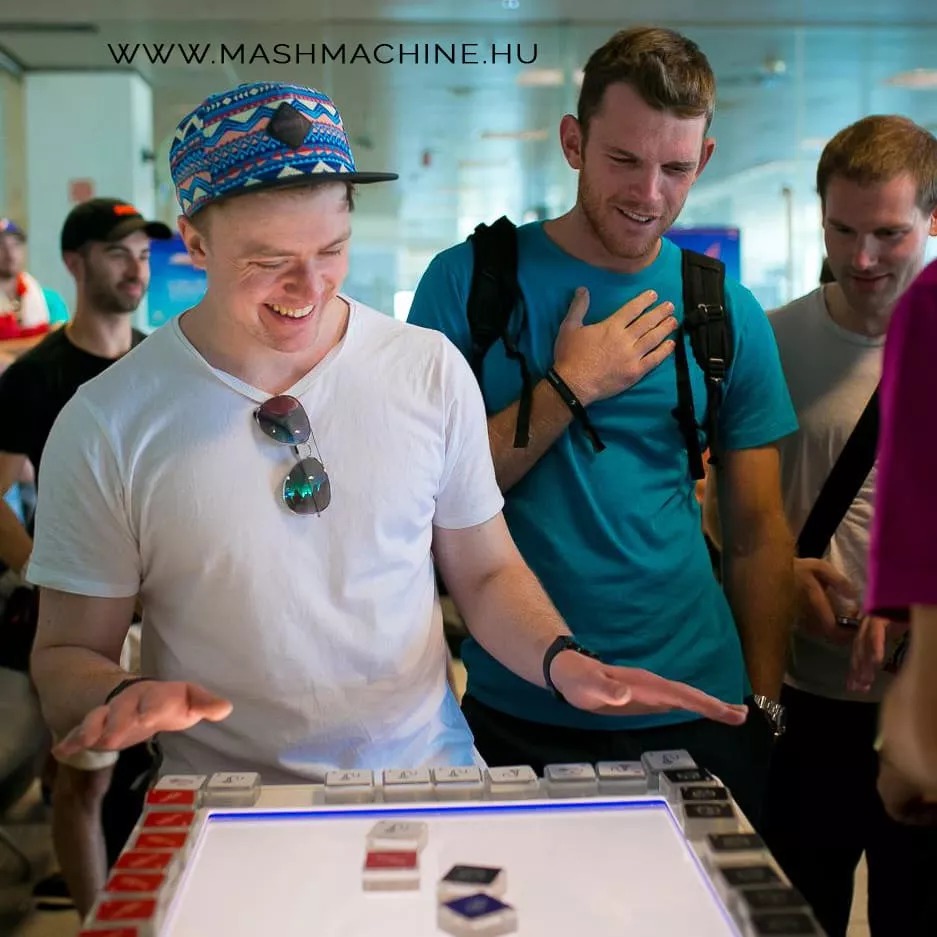 AJÁNLATKÉRÉSA MashMachine egy interaktív zenegép, mely a kockák alján lévő qr kódokkal működik. Ahogy egy kockát az üveglapra helyezünk, egyből hallhatjuk is a hangját. Az sem mindegy, hogy hova tesszük, mert a széleken a hangok különböző effekteket, filtereket kapnak. Egy stíluson belül 40 kocka van (10 VOKÁL, 10 DOB, 10 BASSZUS és 10 DALLAM).