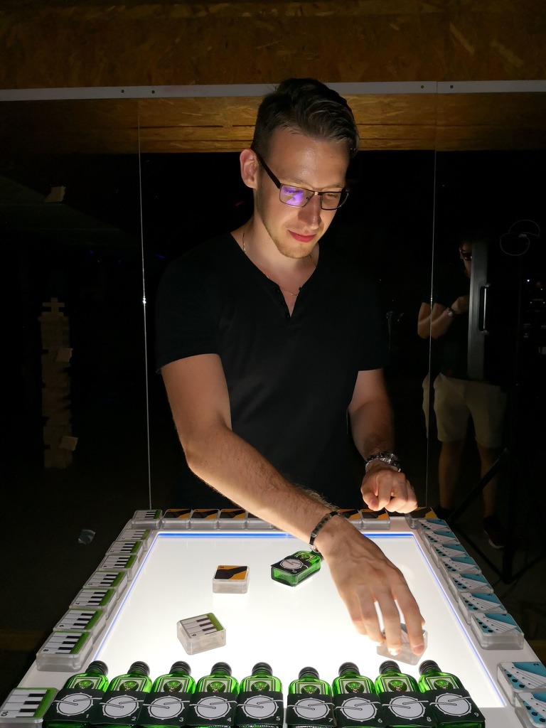 Egy interaktív zenegép, mely bárkiből DJ-t csinál két perc alatt! 20 zenei stílusban zenélhetünk a 40 kocka tologatásával. Egyszerre akár 4-en is játszhatnak vele. Az aktivitást 1 dj-animátor is segíti.