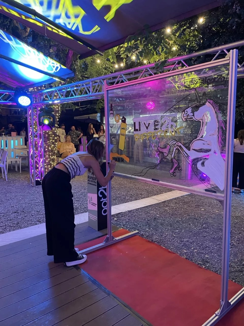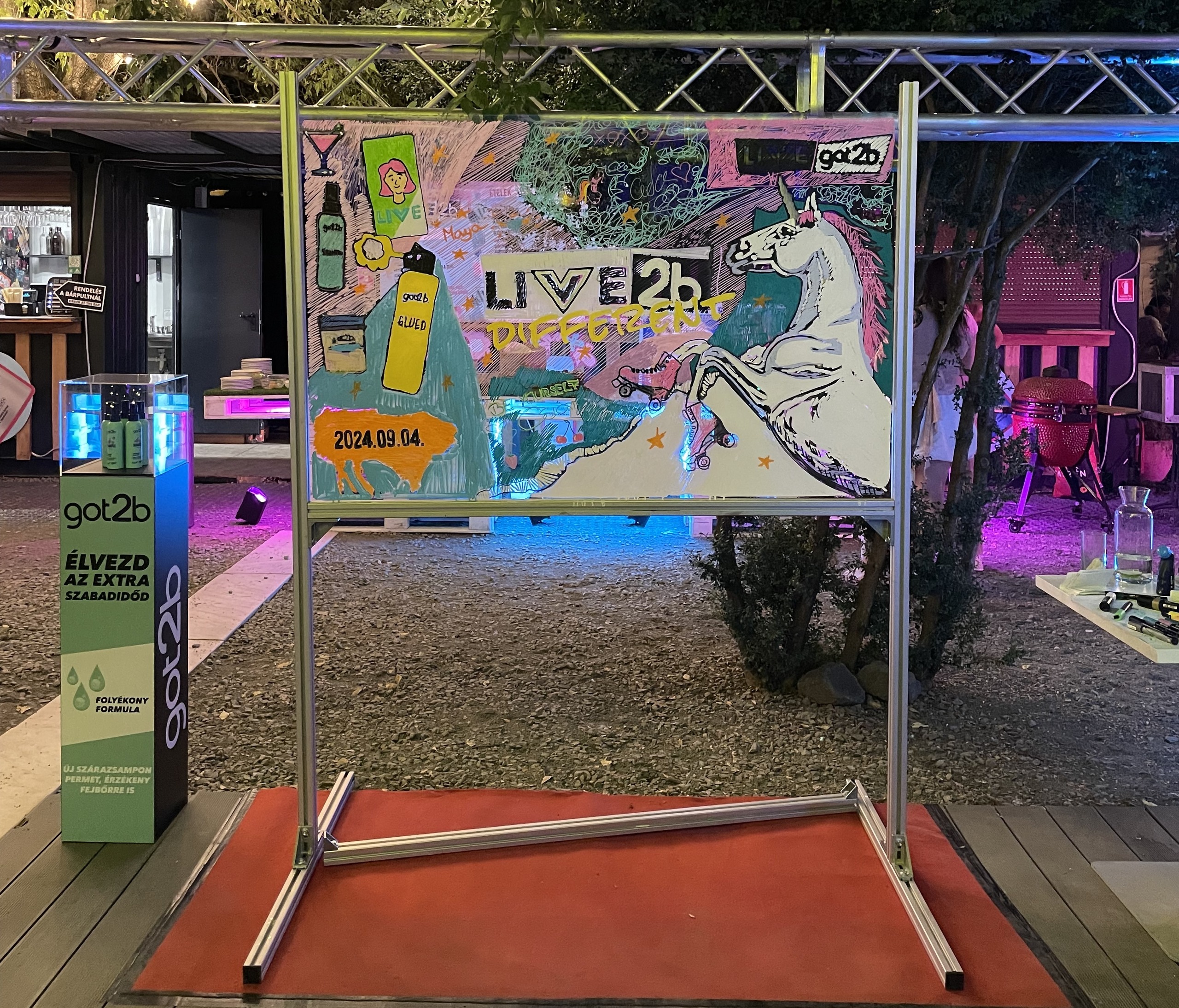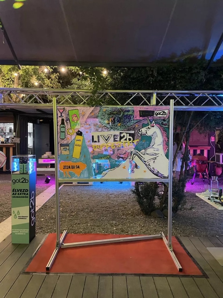 AJÁNLATKÉRÉSA 150x100 cm-es plexi lapot egy állványba rögzítjük, ezen fog elkészülni a nagy mű – méghozzá a vendégek keze által!