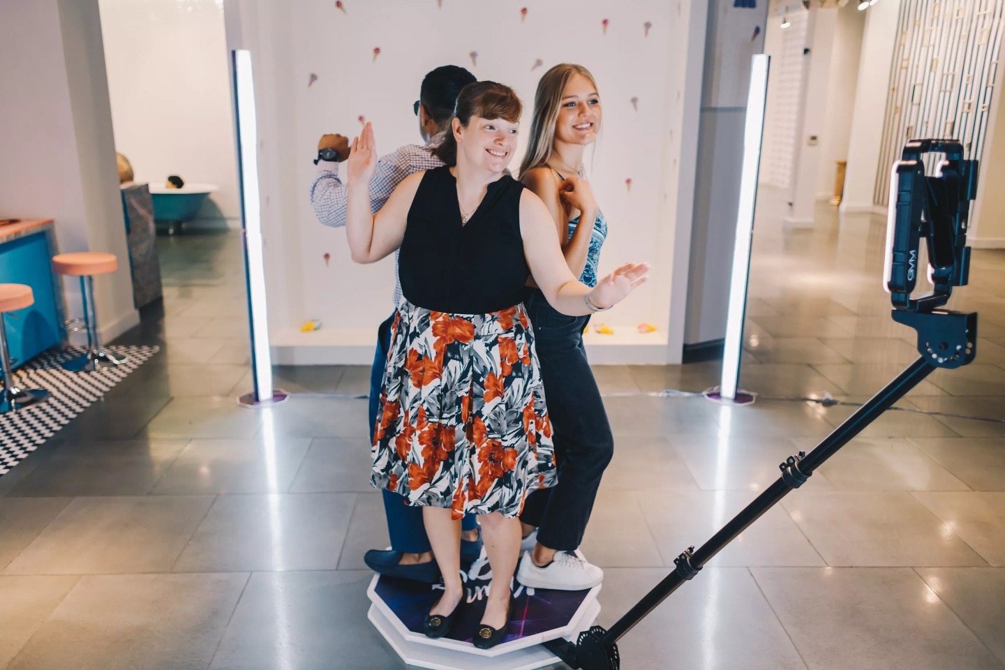 AI segítségével bármilyen karaktert vagy szuperhőst meg tudunk jeleníteni a videón! A vendégek a spinneren állva változnak át kedvenc karakterükké, majd visszaváltoznak eredeti formájukba.