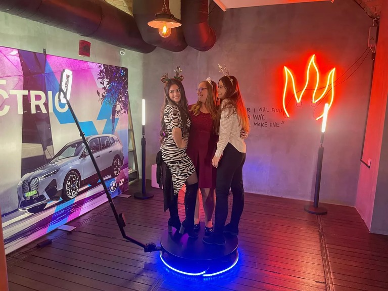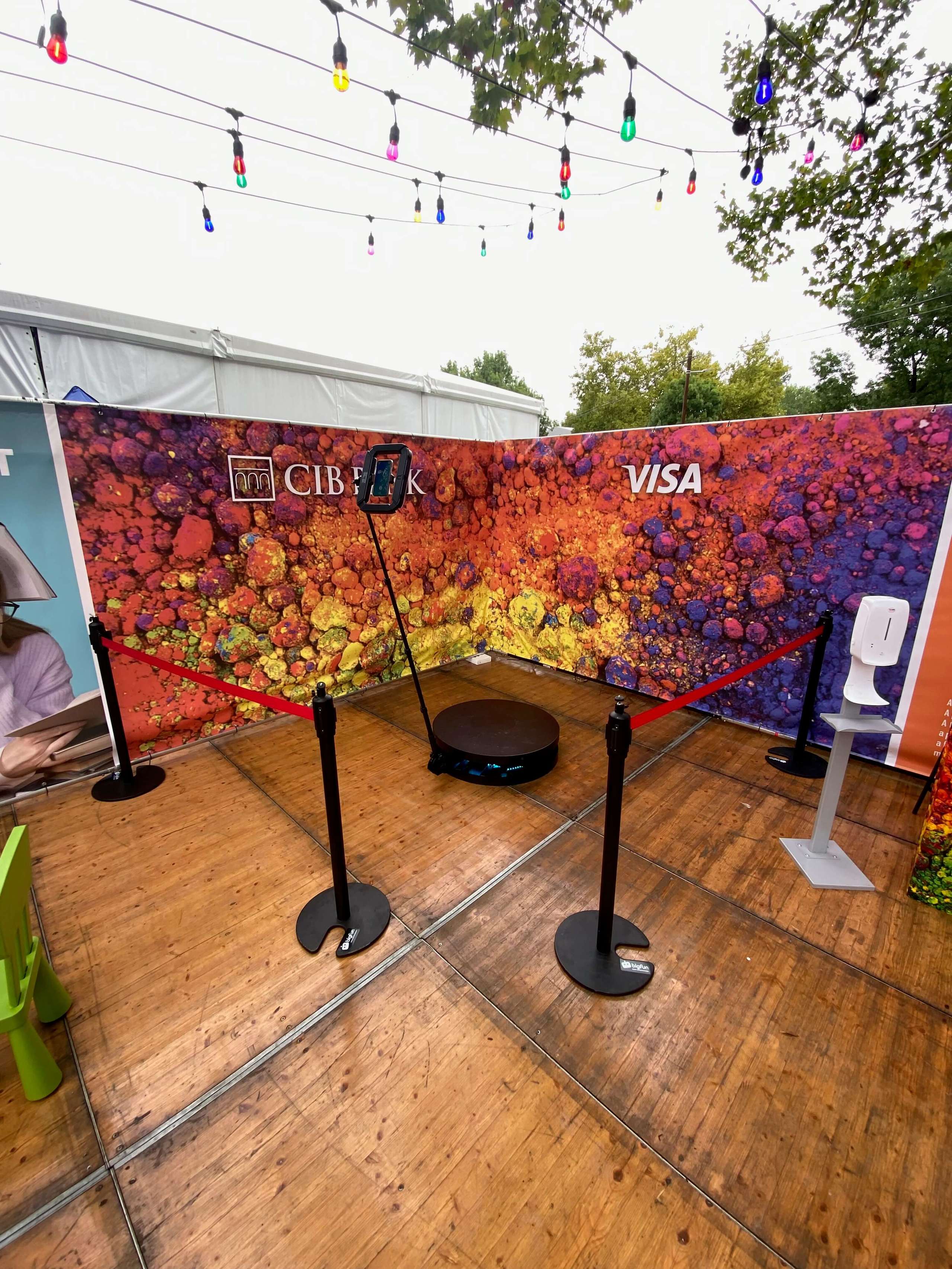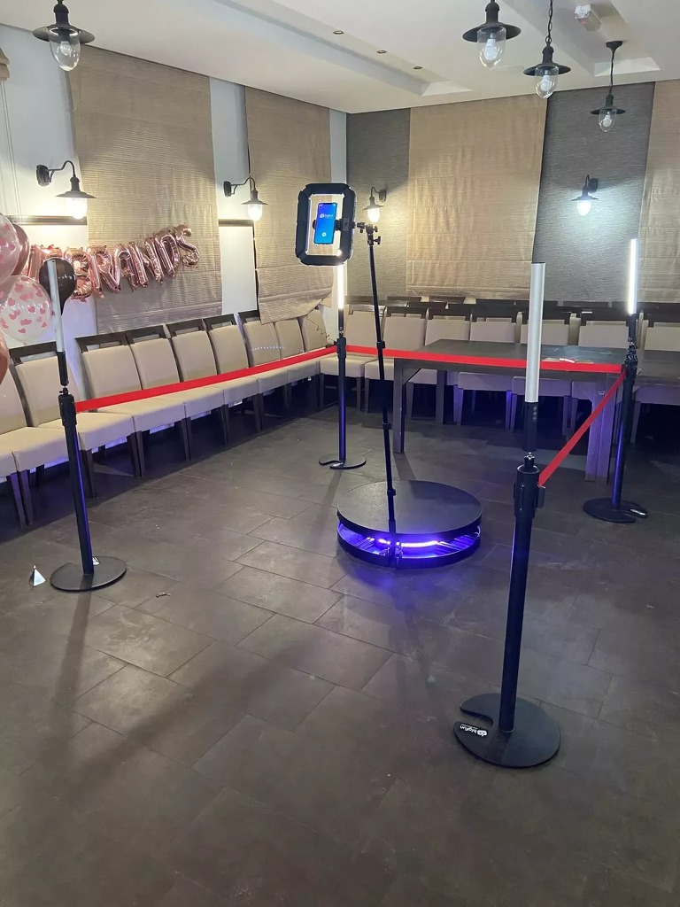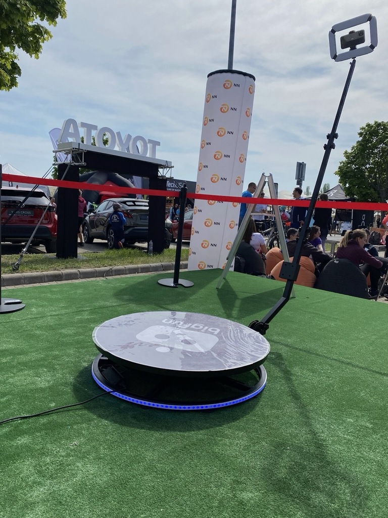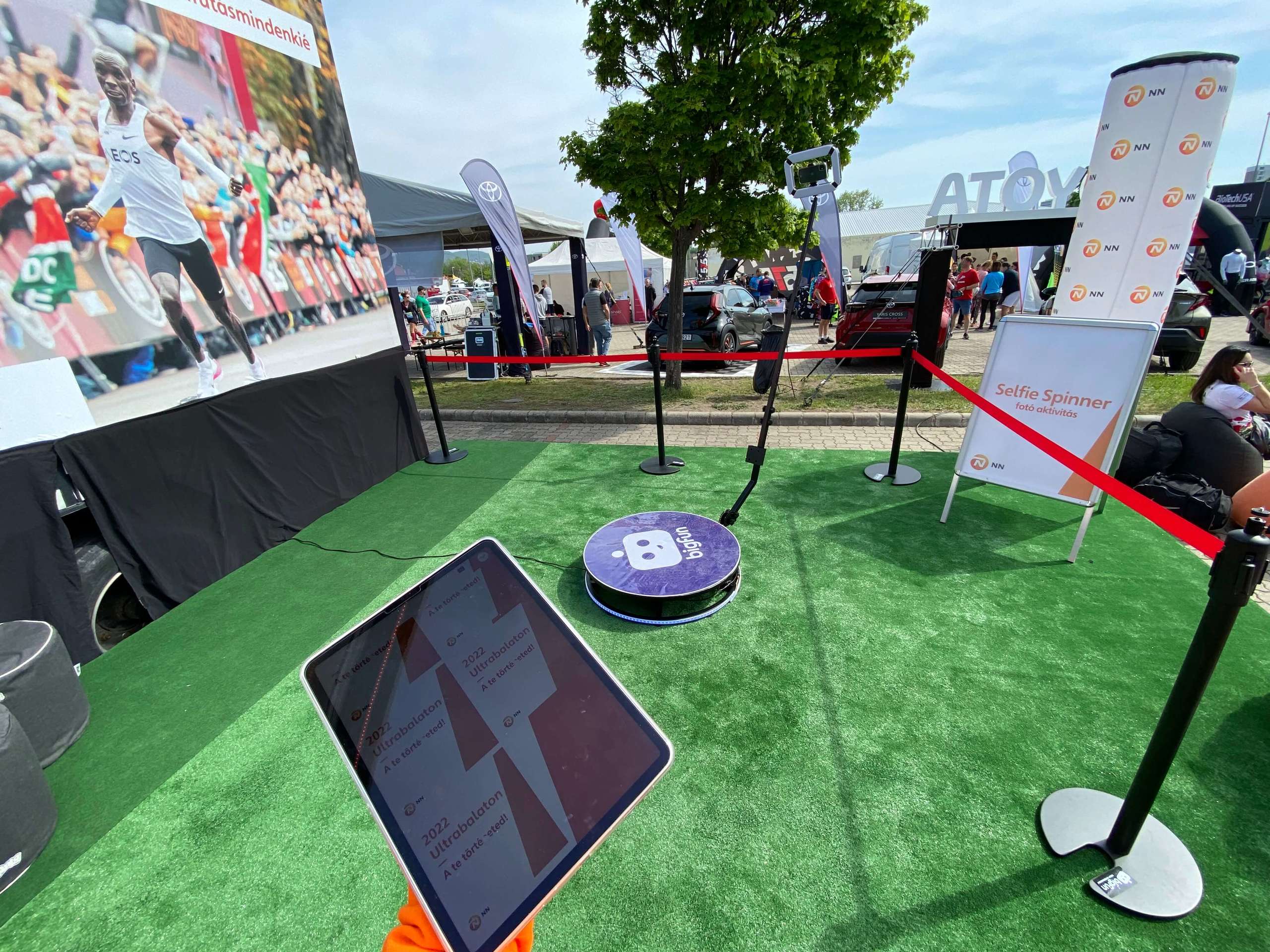 AJÁNLATKÉRÉSA SELFIE SPINNER egy kör alakú platformból, egy forgó motorizált karból, megfelelő fényforrásból és egy nagy felbontású kamerából áll. Amikor a vendégek felálltak a platformra (1-3 fő), egy gombnyomásra elindul körbe a kamera, mely nagyjából 10 mp-ig rögzít. A program a videót pillanatok alatt összevágja, gyorsítja-lassítja, effekteket és filtereket tesz rá, illetve természetesen a branding is rákerül.